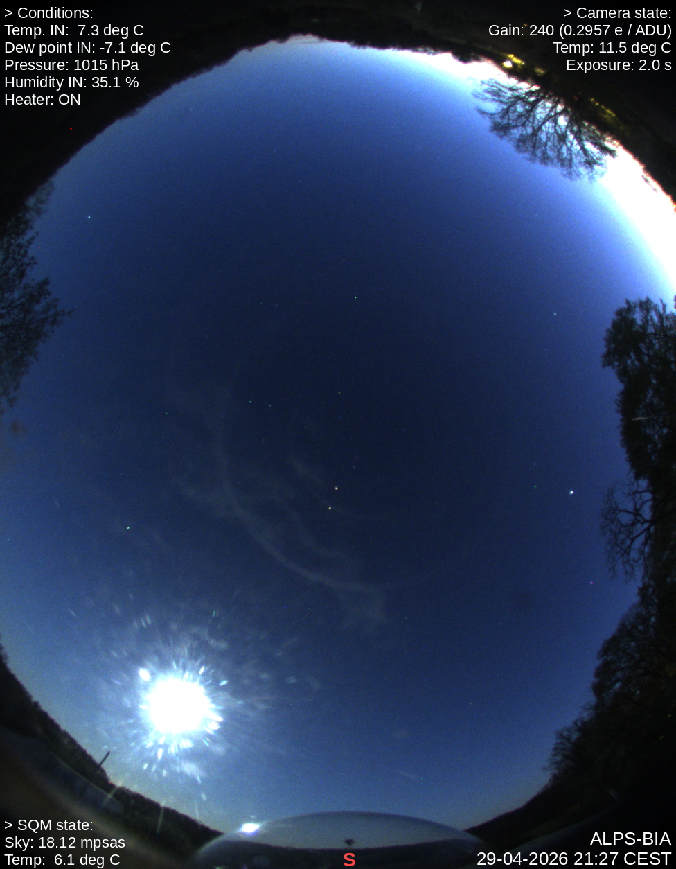 Each station provides all-sky images and a series of brightness measurements for trend and anomaly analysis.